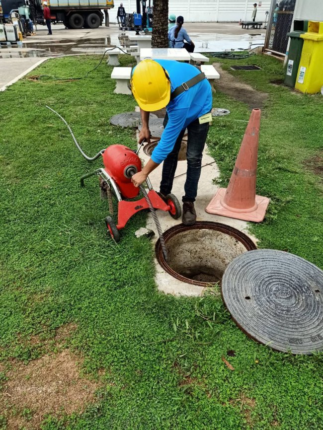 แก้ไขท่อเมนต์ไขมันอุดตัน ที่นิคมอุตสาหกรรมอมตะซิตี้ จ.ชลบุรี
